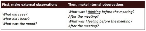 Gather data through observation. After a meeting or encounter, answer these questions: